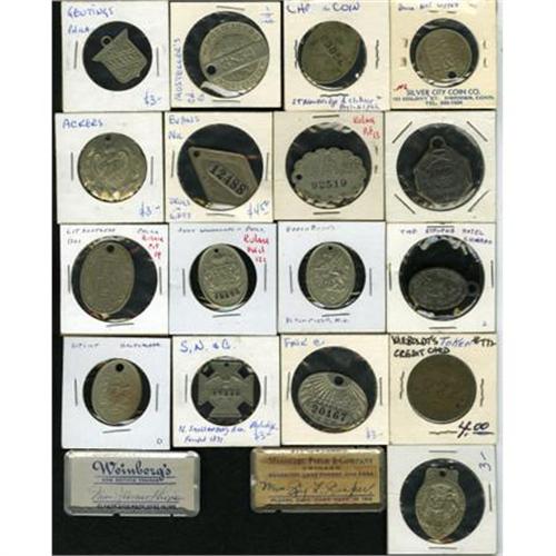 <B>19-Piece Lot of Merchant Store Credit Cards.</B></I> Miscellany of store (metal) credit cards, primarily from the 1890s to the early 1920s.<BR><BR><b>Shipping:</b> Coins & Currency (<a target="_blank" href="http://www.heritageauctions.com/common/shipping.php">view shipping information</a>)