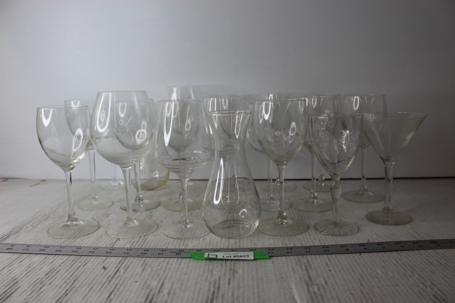 (19) Pieces of Assorted Stemware + Wine Airing Bottle