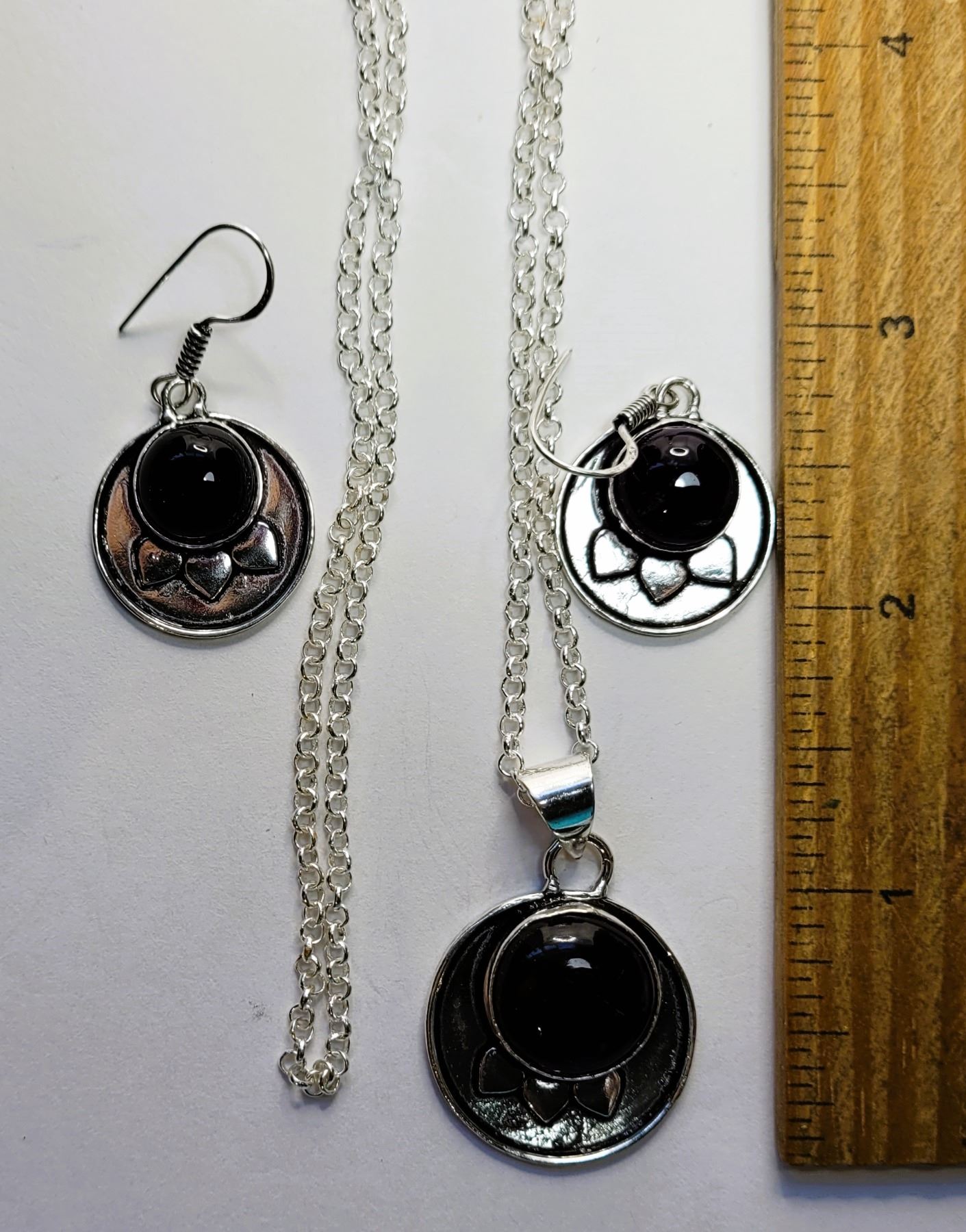 AND MATCHING DROP EARRINGS, STAMPED 925 SILVER PLATED. JEWELRY