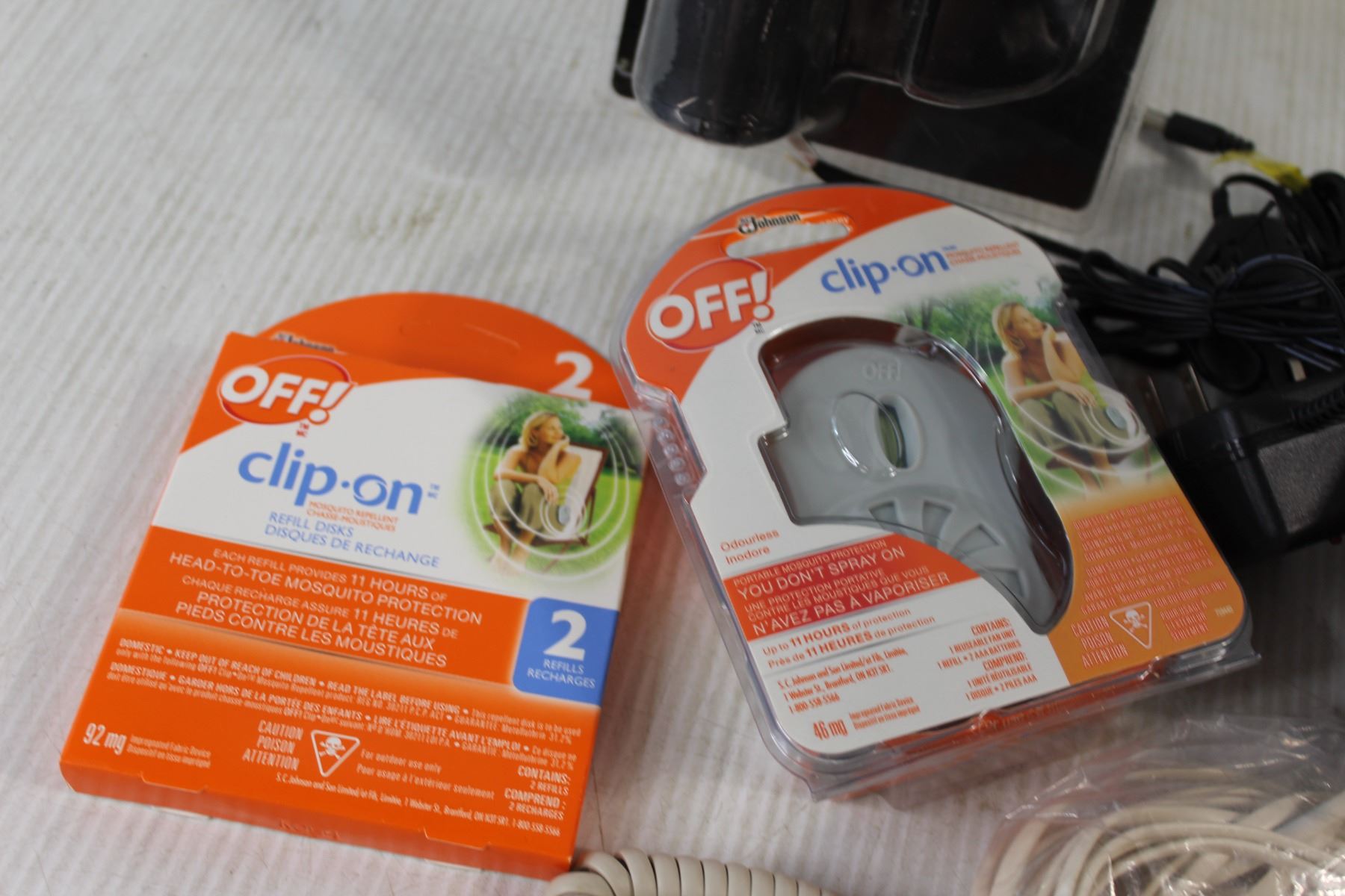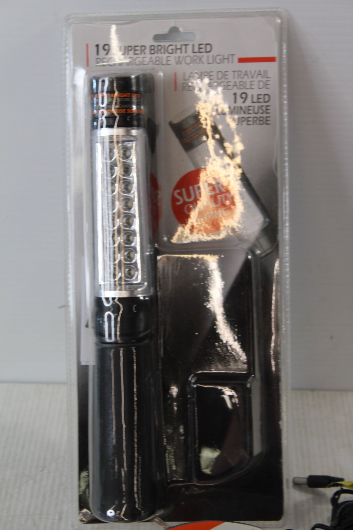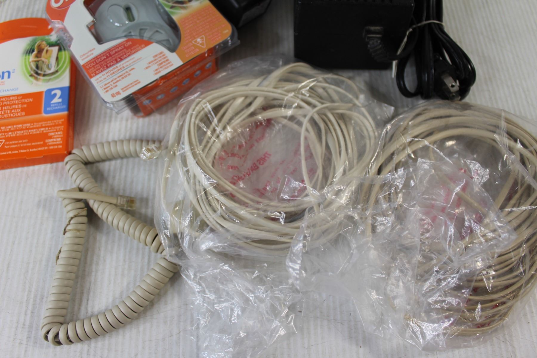19 Super Bright LED Rechargeable Work Light - Tested Works, (2) Packs of Off Clip Ons, (3) Various Phone Cords, Craftsman Fast Charger,