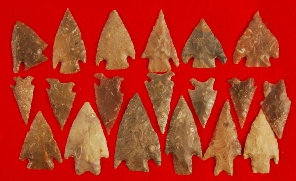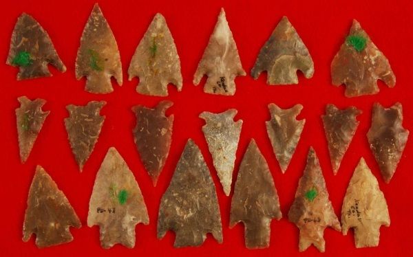 In Riker case. Case measures 12 1/4" x 8 1/4". Largest point measures 3". Marshall points, Montell points,