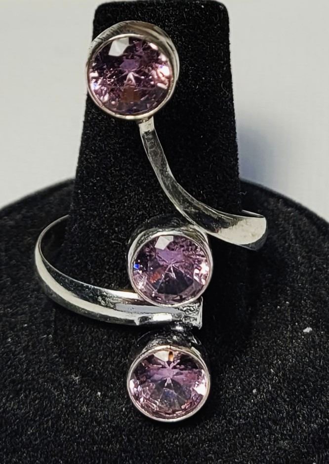 19) UNIQUE PINK KUNZITE FREE SIZE RING, STAMPED