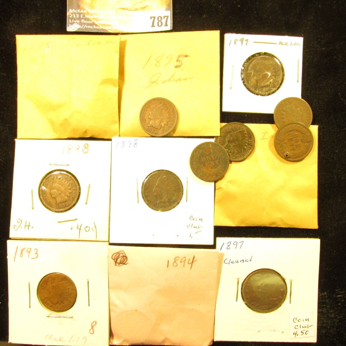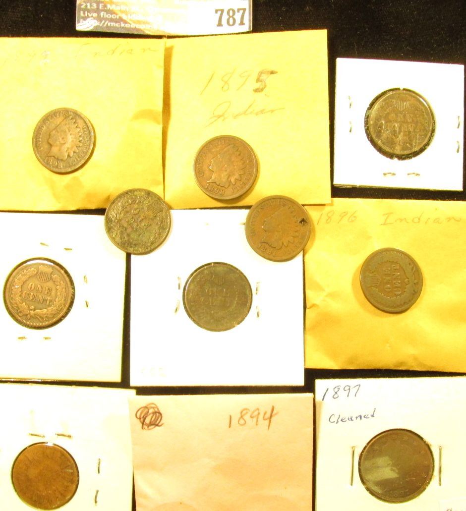 (19) various grade Indian Head Cents dating before 1900, some duplicate dates, all average circulated; & a 1897 Liberty Nickel, Fine (dark).