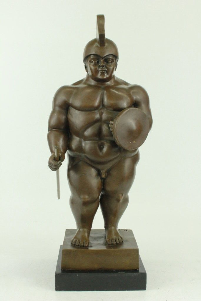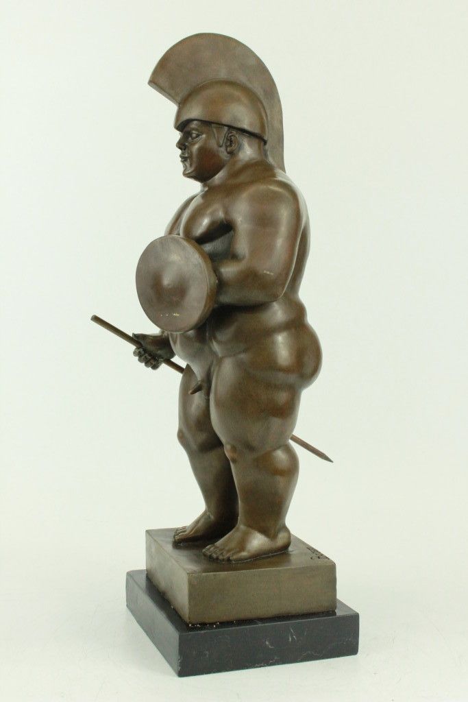 11DS49780 This Is Roman Warrior. Finished In 1986, He Stands Proudly Where He Always Has, On Top Of The Cafesjian Museum Of Arts In Yerevan, Armenia. This Is A Vision Of Rome I Have Never Seen Before: A Chubby One. The Small Shield (Much Smaller Than A Roman Soldier Would Have Used) And What I Can Only Guess Is A Baby Pilum Without A Spearhead, Makes The Warrior Look Even More Comically Massive. All Of Fernando Botero’S Work Is Of A Similar Style, Which Some Refer To As “Boterismo.” This Handmade 100% Bronze Sculpture Was Cast Using The "Lost Wax Method" And Mounted On A Marble Base And Is Signed Botero...................SHIPPING USA: $25....HI, ALASKA, CANADA: $69...ALL OTHER COUNTRIES: $169