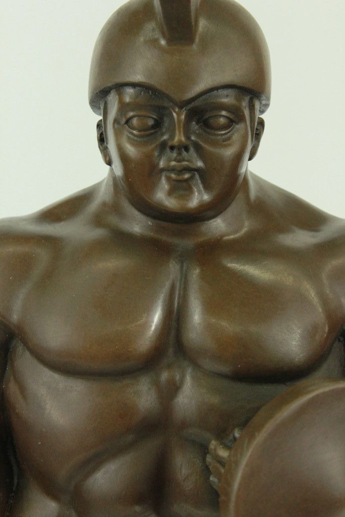 19"x9" Large Roman Warrior By Botero Bronze Sculpture Marble Base Statue Figurine Decor 19 LBS.