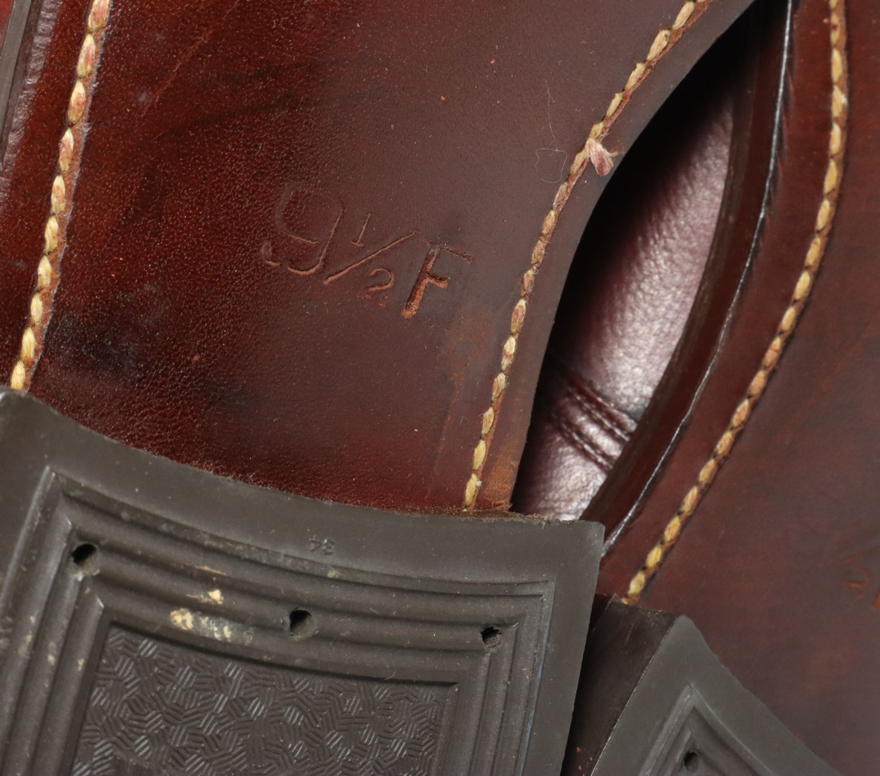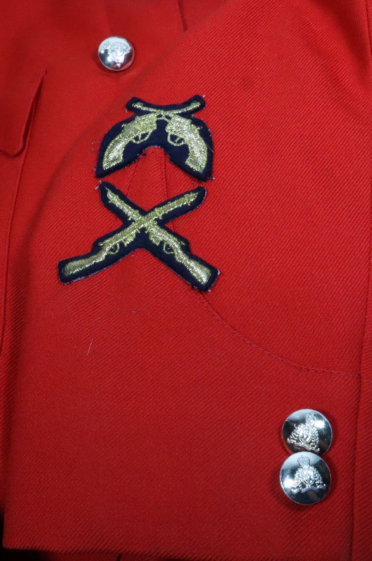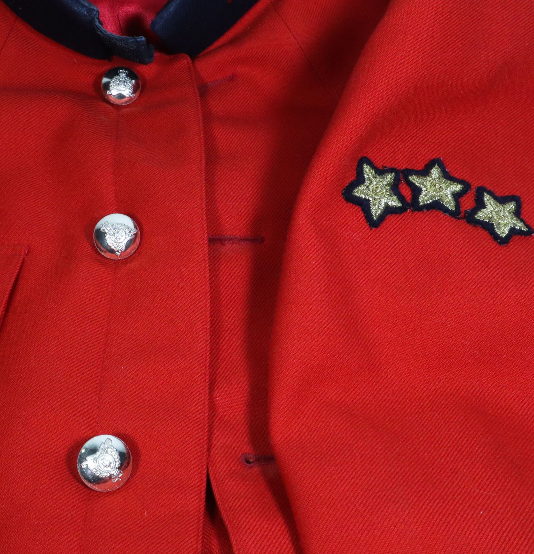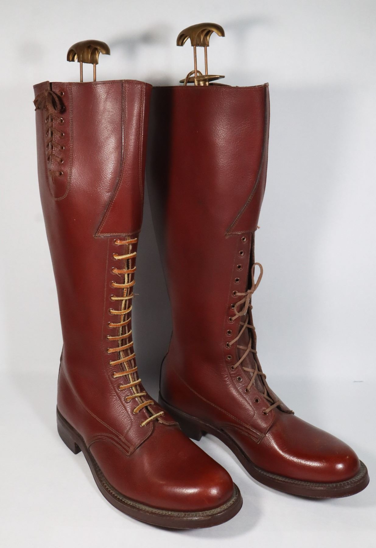 INCLUDES HIGH BROWN BOOTS GOODYEAR 9 1/2 F BELT HOLSTER PANTS 1973 RED SERGE UNIFORM + 1980 DATED PEAKED VISOR CAP + QUEEN ELIZABETH II QEII BADGE