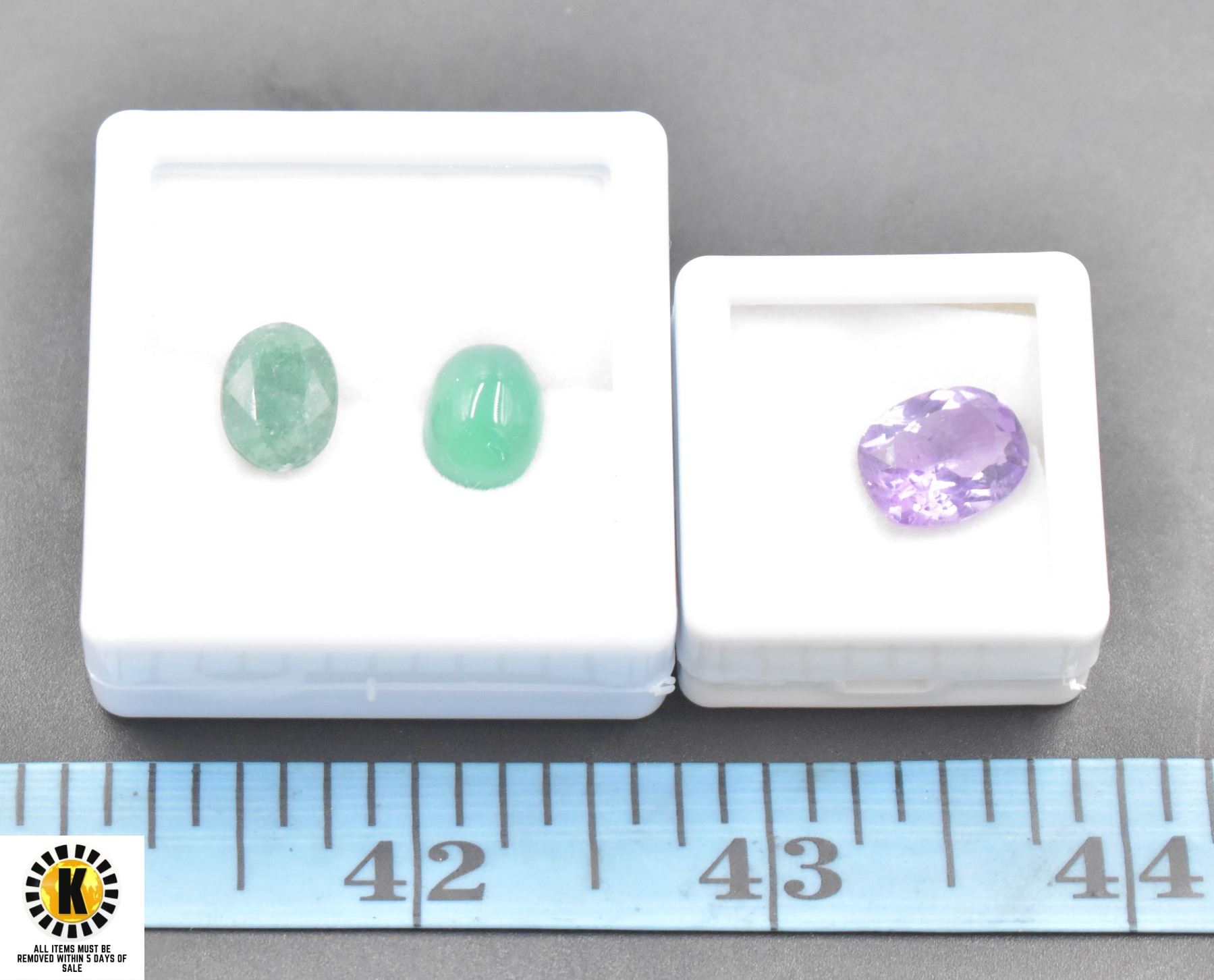 UNTREATED AMETHYST 10 X 12MM& AGATE 8.6 X 11.6MM/UNHEATED EMERALD 8.6 X 11.6MM