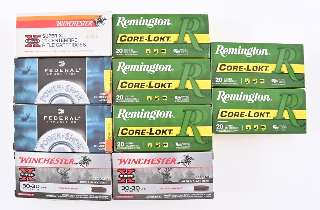 100 Rounds (5 Boxes) 150 Gr. Core-Lokt Remington 40 Rounds (2 Boxes) 150 Gr. PP Winchester. 20 Rounds (1 Box) 150 Gr. HP Winchester. 30 Rounds (1.5 Boxes) 150 Gr. SP FN Federal.