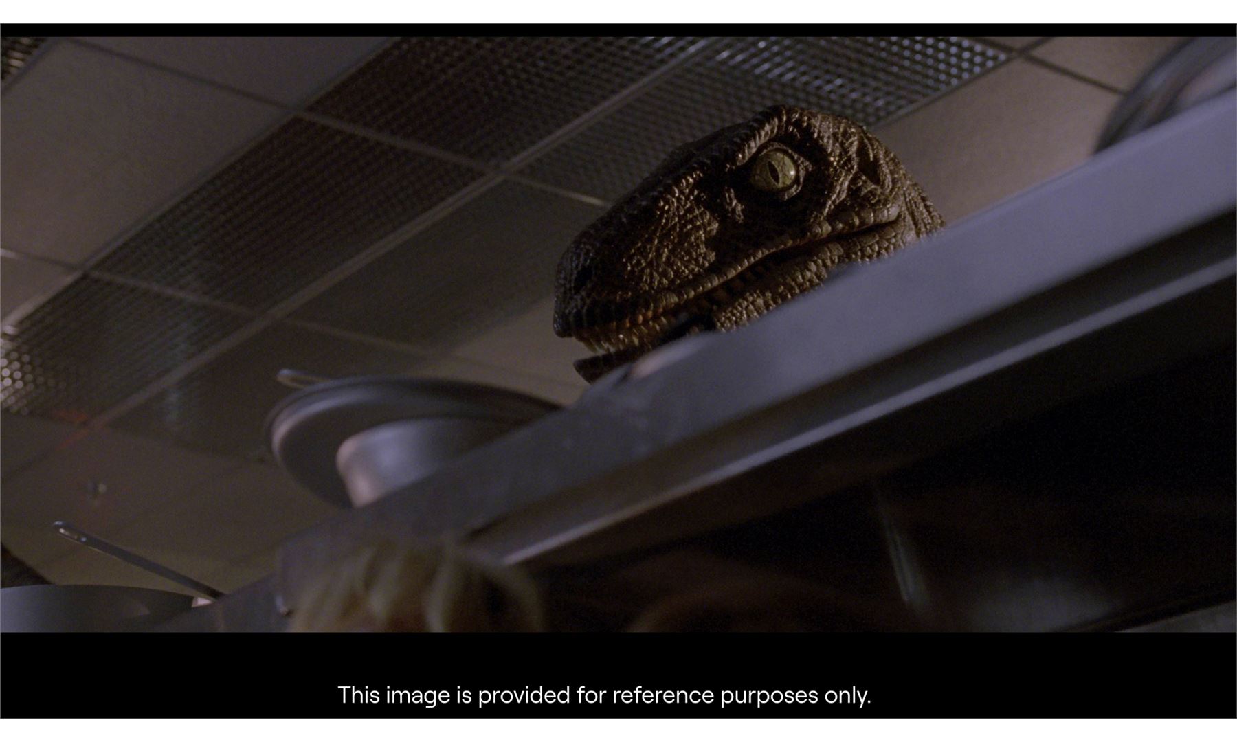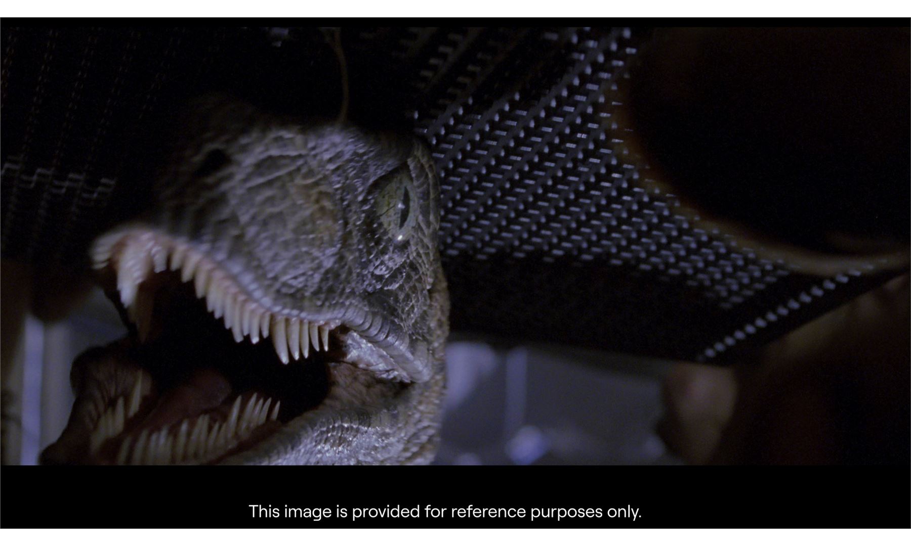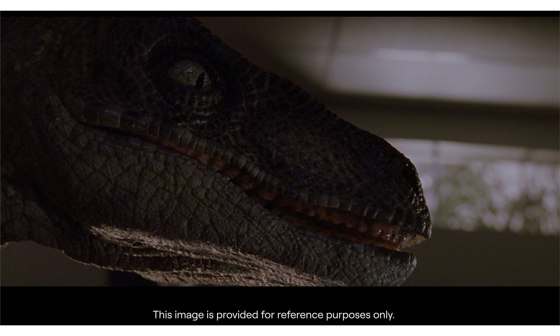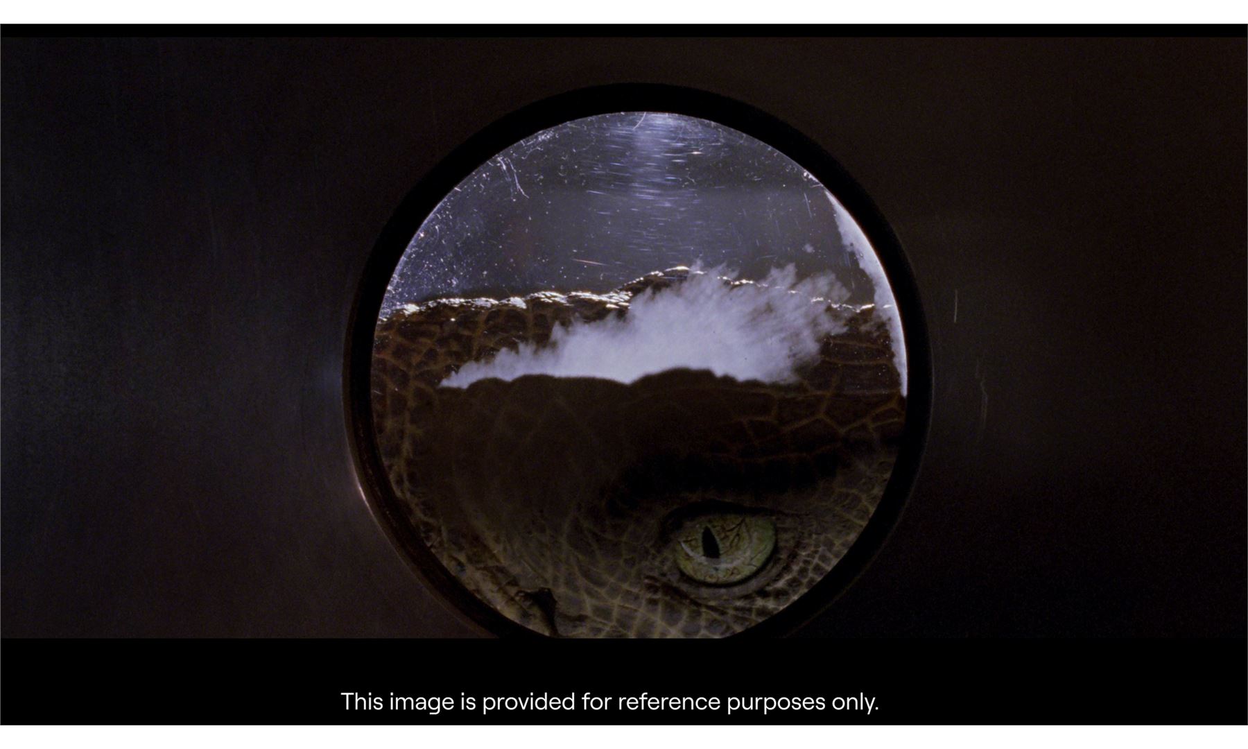 JURASSIC PARK (1993) - Velociraptor Eye Display - A velociraptor eye display from Steven Spielberg's Jurassic Park. Velociraptors watched game warden Robert Muldoon (Bob Peck) and Dr. Ellie Sattler (Laura Dern) attempt to manually recharge the power grid to Jurassic Park.