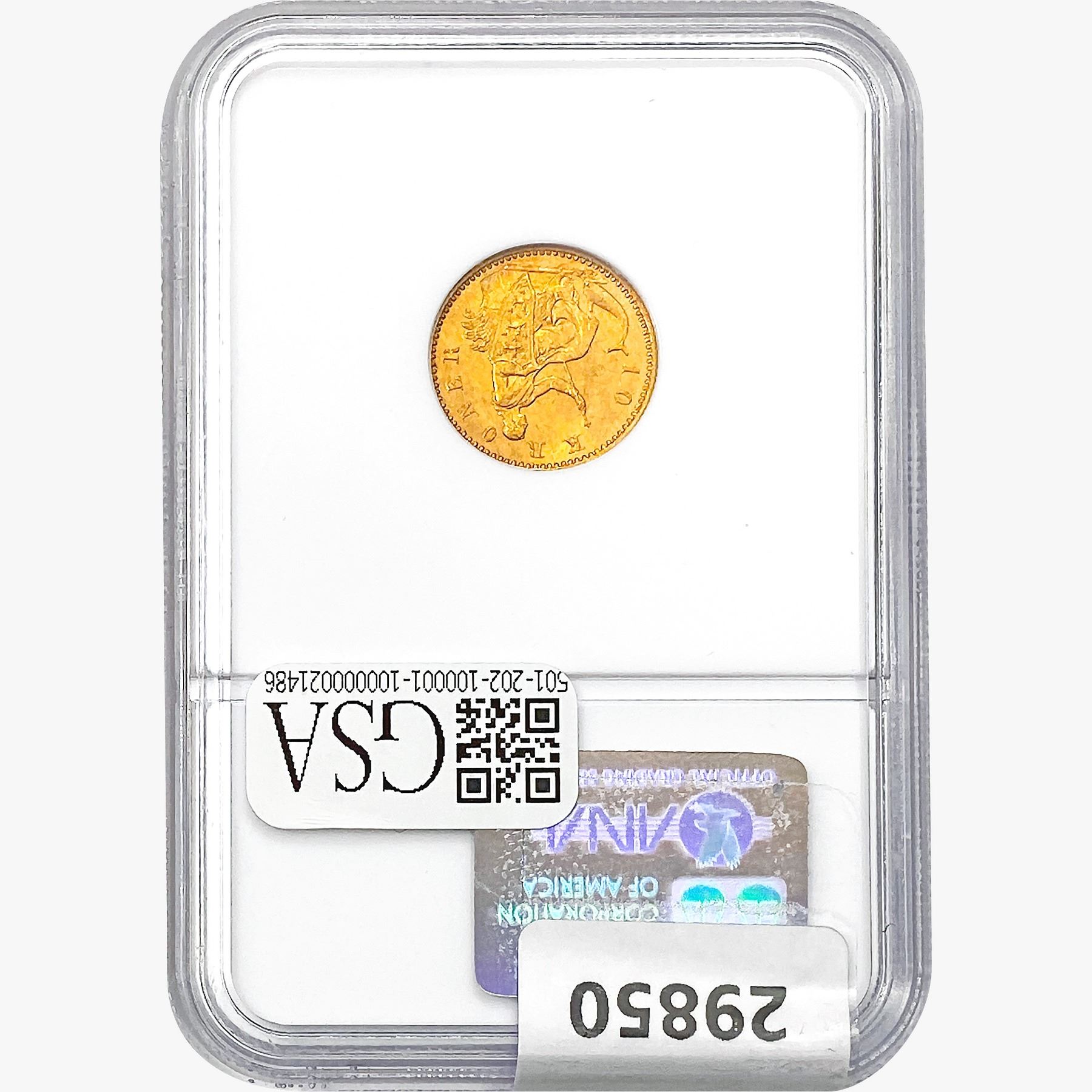 e. Coins sold referencing a third-party grading service are sold “AS IS” without any express or implied warranty, except for a guarantee by GSA that they are genuine. Removal or alteration of the holder, voids all of Bidder’s claims concerning that Product. Certain warranties may be available from the grading services and Bidders are referred to them for further details: Numismatic Guaranty Corporation (NGC), PO Box 4776, Sarasota, FL 34230, www.ngccoin.com/services/writtenguarantee.asp; Professional Coin Grading Services (PCGS), PO Box 9458, Newport Beach, CA 92658, www.pcgs.com/guarantee.html; ANACS, 6555 S. Kenton St., Ste. 303, Englewood, CO 80111; and Independent Coin Grading Co. (ICG), 7901 East Bellview, Ave., Suite 50, Englewood, CO 80111.