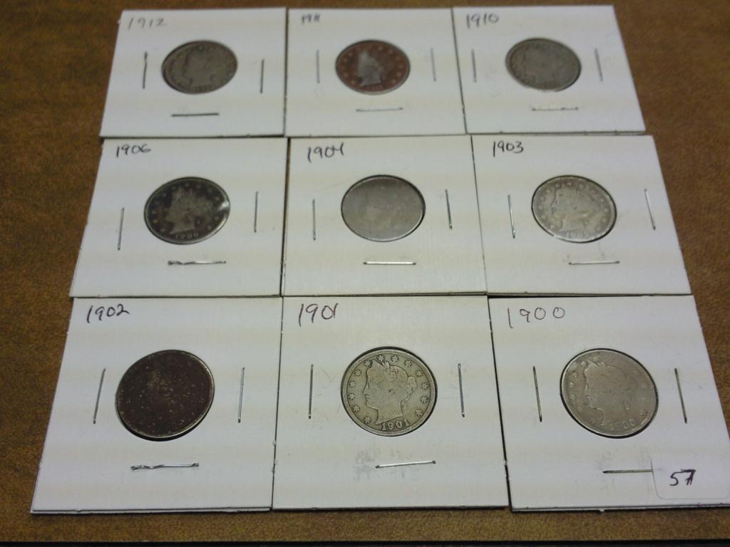 1900,01,02,03,04,06,10,11 & 12 Liberty "V" Nickels