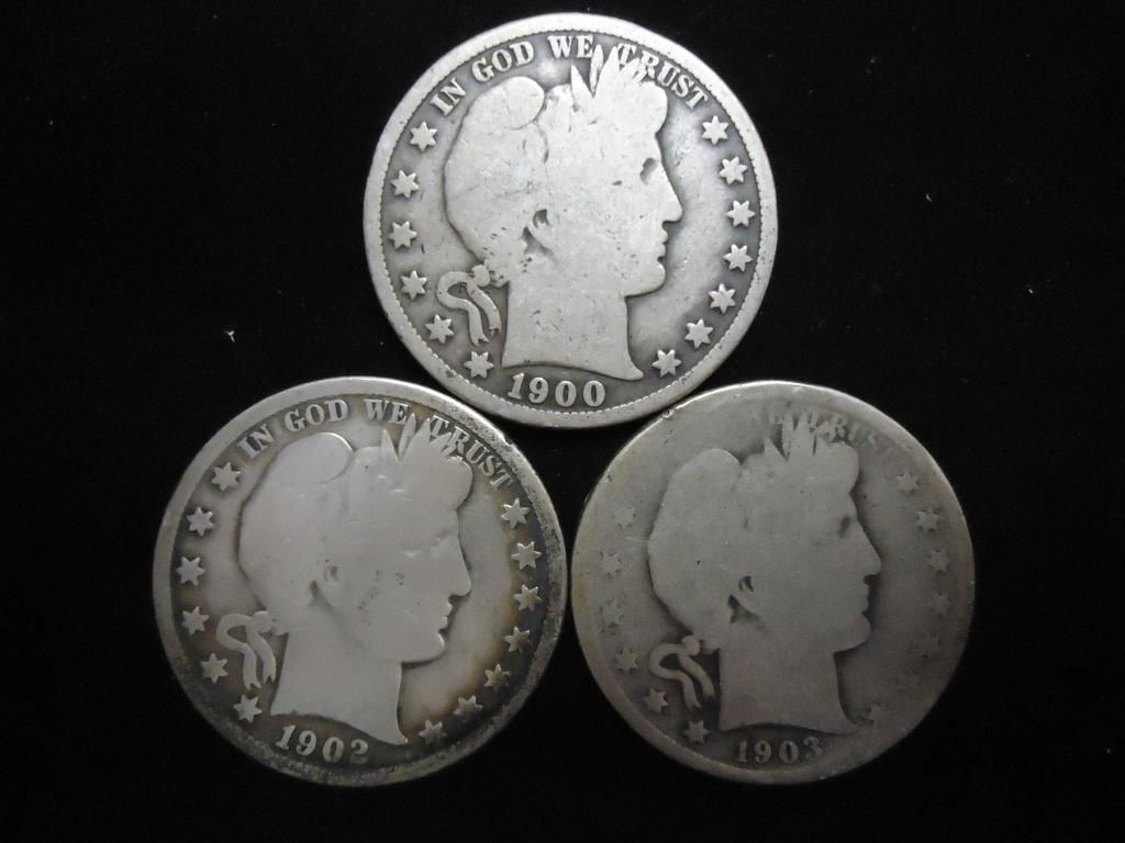 1900,02-O & 03 BARBER HALF DOLLARS