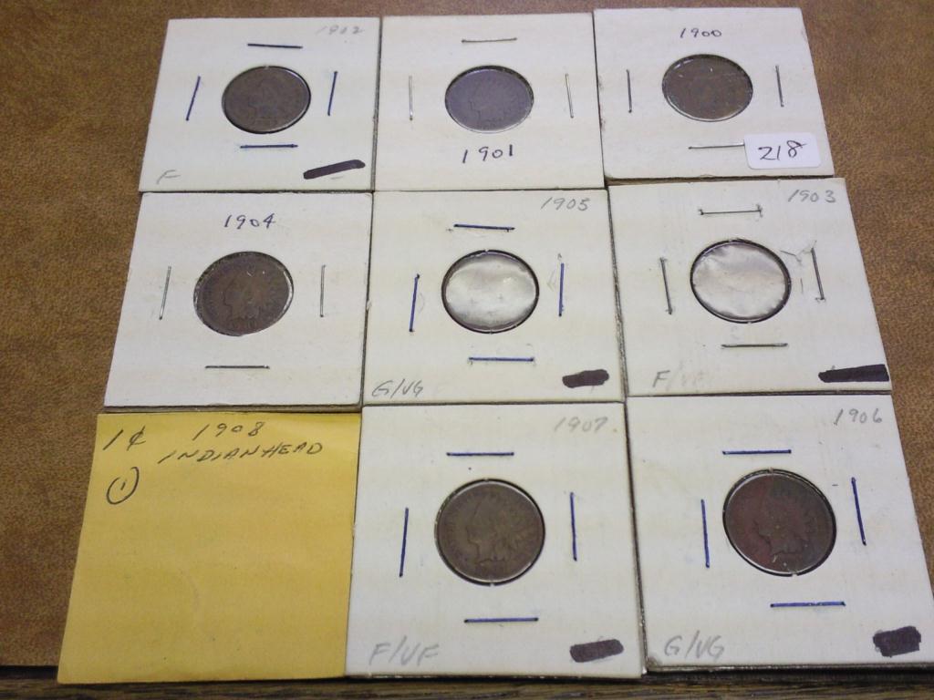 1900-08 INDIAN HEAD CENTS 9 COINS