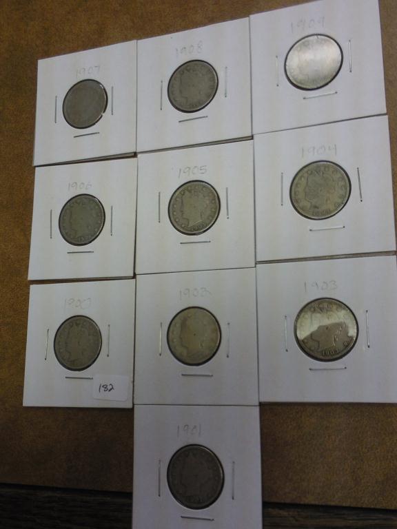 1900-09 LIBERTY "V" NICKELS 10 COINS
