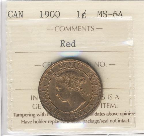 1900 1¢. Gem example certified ICCS MS64RD. Full red with lots of lustre