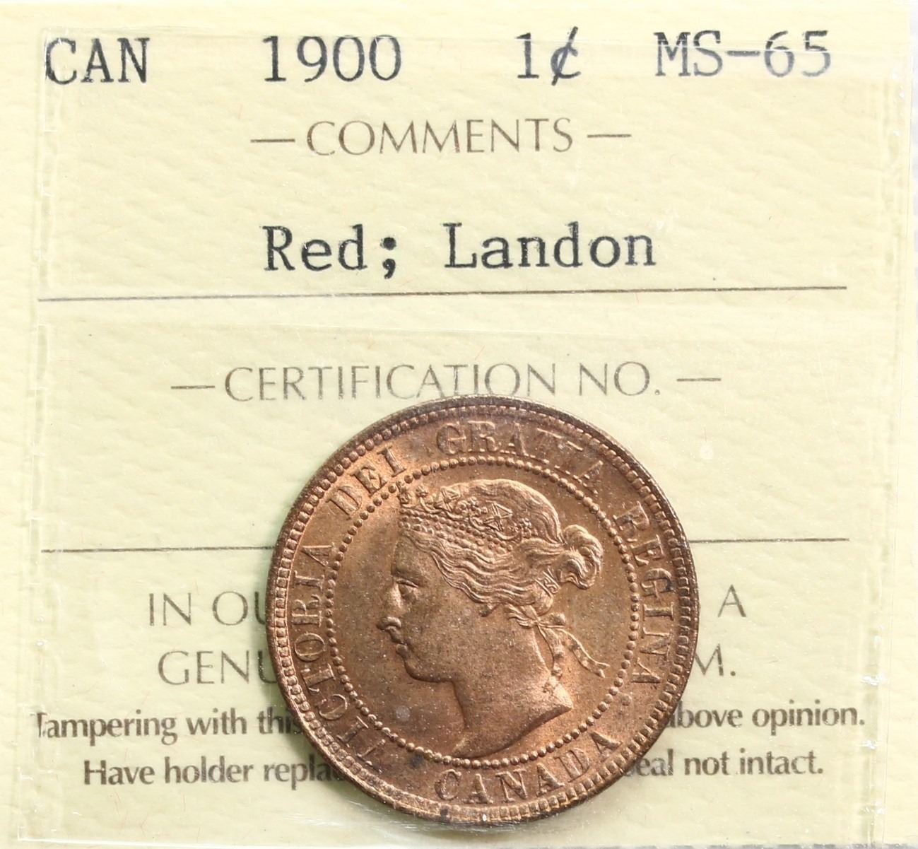 1900 1¢ ICCS Gem Mint State-65 Red. A near Full red example with superb eye appeal. Ex Landon example.