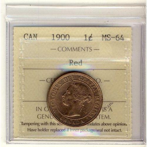 1900 1¢ ICCS MS-64 RED, a really nice example with great fields.