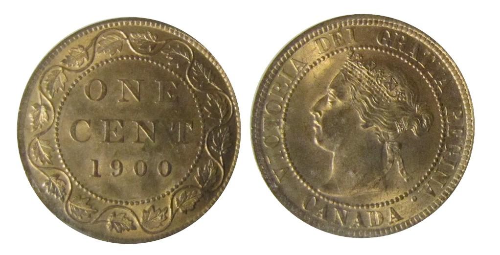 1900 1¢ ICCS MS65RD. Gem with 90% red and lustrous.
