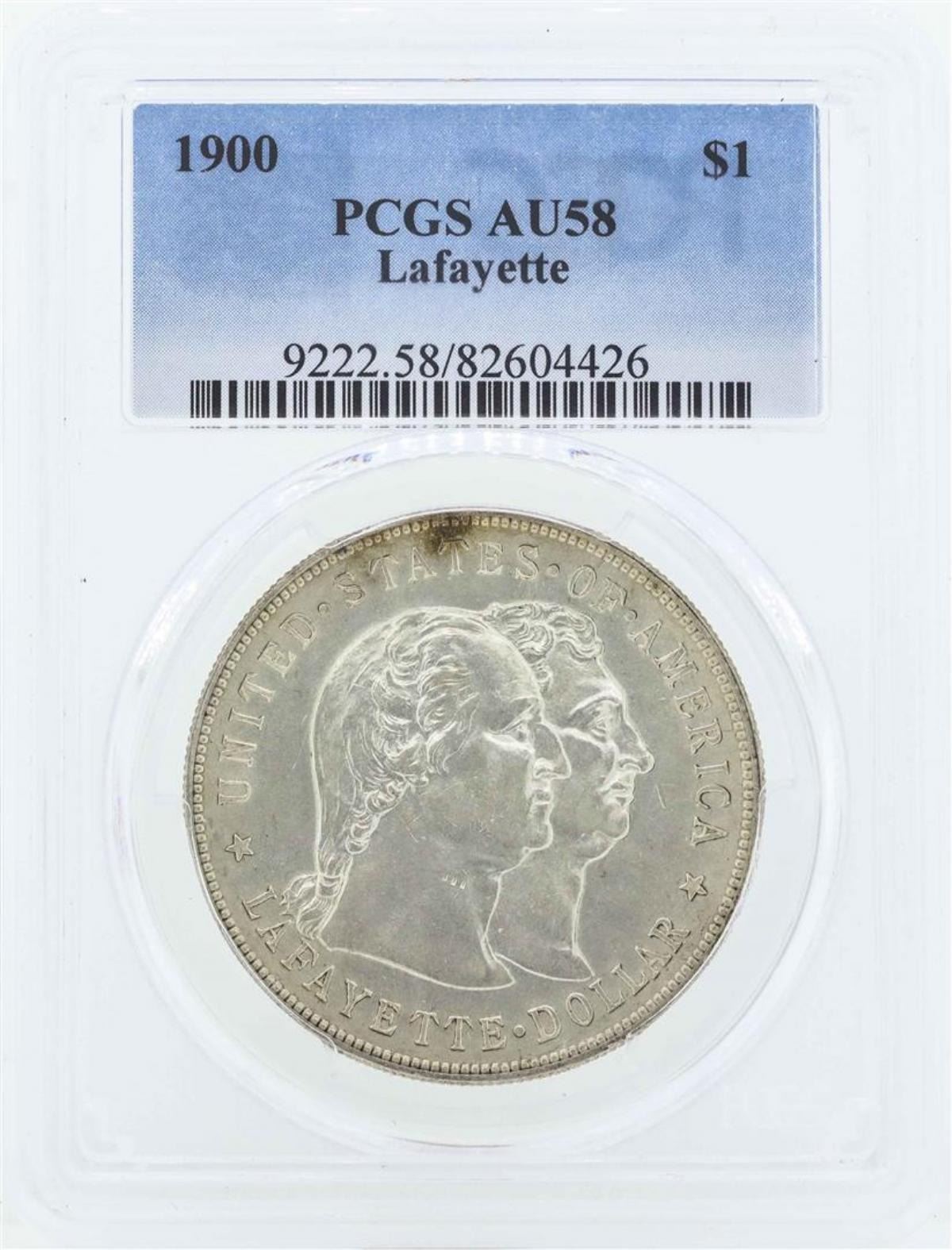 One 1900 $1 Lafayette Commemorative Dollar Coin PCGS AU58. PCGS Certified.