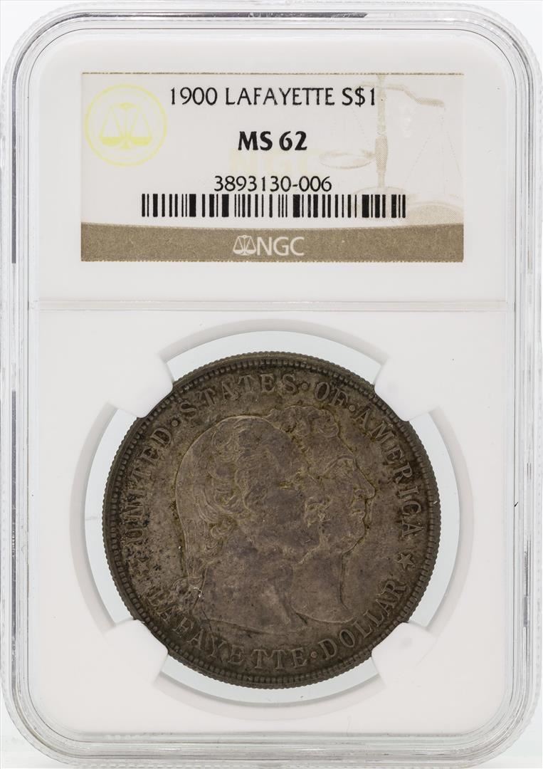 One 1900 $1 Lafayette Commemorative Silver Dollar Coin NGC MS62. NGC Certified.