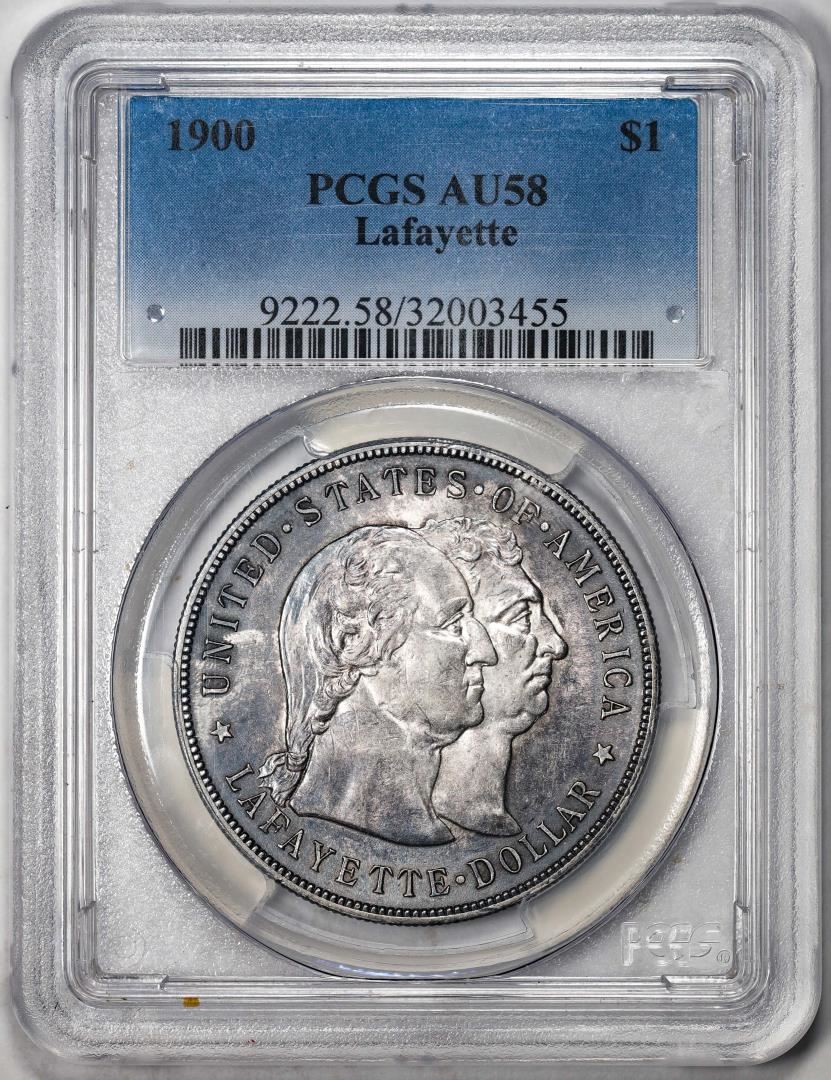 One 1900 $1 Lafayette Commemorative Silver Dollar Coin PCGS AU58. PCGS Graded.