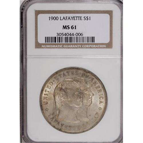 <B>1900 $1 Lafayette Dollar MS61 NGC.</B></I> DuVall 1-B. A lustrous silver dollar with medium honey-gold toning and a sharp strike. Close examination reveals scattered small abrasions.<BR><BR><b>Shipping:</b> Coins & Currency (<a target="_blank" href="http://www.heritageauctions.com/common/shipping.php">view shipping information</a>)