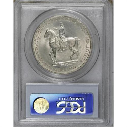 <B>1900 $1 Lafayette Dollar MS62 PCGS.</B></I> DuVall 1-B. This well struck example shows subtle luster beneath silver-gray and cream patina. Scattered wispy abrasions appear on and near the portraits. Overall, a pleasing piece for the grade.<BR><BR><b>Shipping:</b> Coins & Currency (<a target="_blank" href="http://www.heritageauctions.com/common/shipping.php">view shipping information</a>)