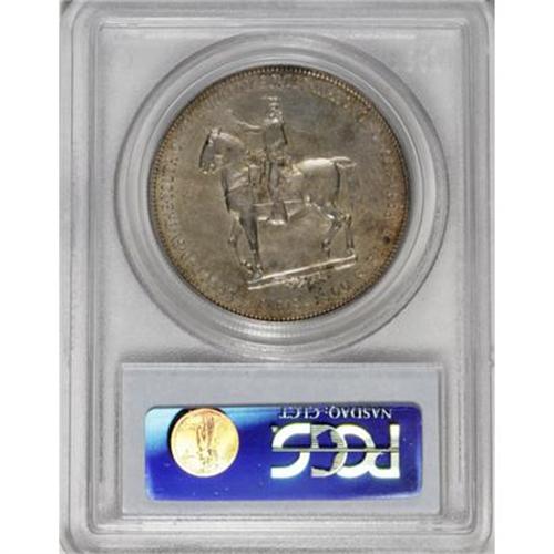 <B>1900 $1 Lafayette Dollar MS63 PCGS.</B></I> Variety 1-B. Boldly detailed with lovely red-orange peripheral toning on each side. Faint die polish lines are noticeable in the reverse fields. On the obverse, several small dark-green spots are noted, along with some wispy contact marks on George Washington's cheek. A Select Mint State example of the first American commemorative silver dollar issue.<BR><BR><b>Shipping:</b> Coins & Currency (<a target="_blank" href="http://www.heritageauctions.com/common/shipping.php">view shipping information</a>)