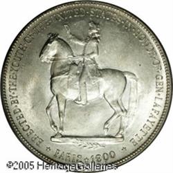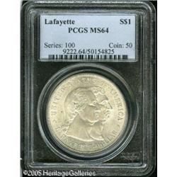 <B>1900<img border='0' src='http://www.heritagecoins.com/images/star.gif' width=10 height=10>$1 Lafayette Dollar MS64 PCGS.</B></I> DuVall 1-B. Satiny and generally untoned, with a touch of haziness over the dual portraits on the obverse. A few wispy abrasions are of minimal distraction on this Choice representative. Lot:8420