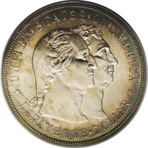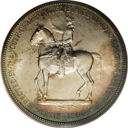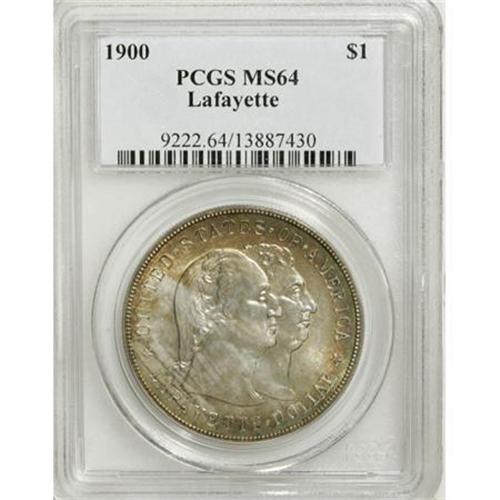<B>1900 $1 Lafayette Dollar MS64 PCGS.</B></I> DuVall 1-B. The lower left leaf points between the 19 in the date on this plentiful die pairing. Sea-green, peach-tan, and honey-gold shades endow the peripheries. A lustrous and boldly impressed representative with a clean obverse and moderate contact on the right reverse field.<BR><I>From The Frank DuVall Collection of U.S. Commemoratives.</B></I><BR><BR><b>Shipping:</b> Coins & Currency (<a target="_blank" href="http://www.heritageauctions.com/common/shipping.php">view shipping information</a>)