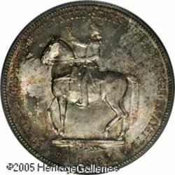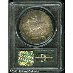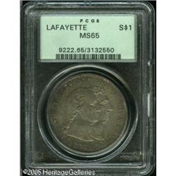 <B>1900<img border='0' src='http://www.heritagecoins.com/images/star.gif' width=10 height=10>$1 Lafayette Dollar MS65 PCGS.</B></I> DuVall 1-B. There are very few abrasions on either side of this deeply toned, copper-gray and reddish-gold example. The underlying cartwheel luster is visible as the surfaces rotate beneath a light. A high quality survivor from a commemorative issue that is usually represented by lower quality coins. Lot:8421