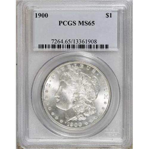 <B>1900 $1 MS65 PCGS.</B></I> PCGS Population (2898/513). NGC Census: (3401/476). Mintage: 8,830,912. Numismedia Wsl. Price for NGC/PCGS coin in MS65: $140. (#7264)<BR><BR><B>Coin Engraver:</B> George T. Morgan<BR><BR><b>Shipping:</b> Coins & Currency (<a target="_blank" href="http://www.heritageauctions.com/common/shipping.php">view shipping information</a>)