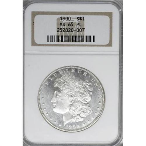 <B>1900 $1 MS65 Prooflike NGC.</B></I> Bright Prooflike surfaces are untoned and have been well cared for. The design elements are much better struck than is typical for the 1900 dollar, as evidenced by sharp definition in the hair over Liberty's ear and on the eagle's breast feathers. Census: 30 in 65 Prooflike, 1 finer (10/07).<BR><BR><B>Coin Engraver:</B> George T. Morgan<BR><BR><b>Shipping:</b> Coins & Currency (<a target="_blank" href="http://www.heritageauctions.com/common/shipping.php">view shipping information</a>)