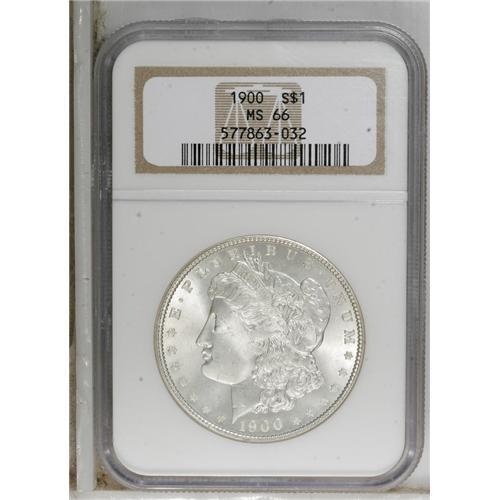 <B>1900 $1 MS66 NGC.</B></I> NGC Census: (424/27). PCGS Population (469/17). Mintage: 8,830,912. Numismedia Wsl. Price for NGC/PCGS coin in MS66: $570. (#7264)<BR><BR><b>Shipping:</b> Coins & Currency (<a target="_blank" href="http://www.heritageauctions.com/common/shipping.php">view shipping information</a>)
