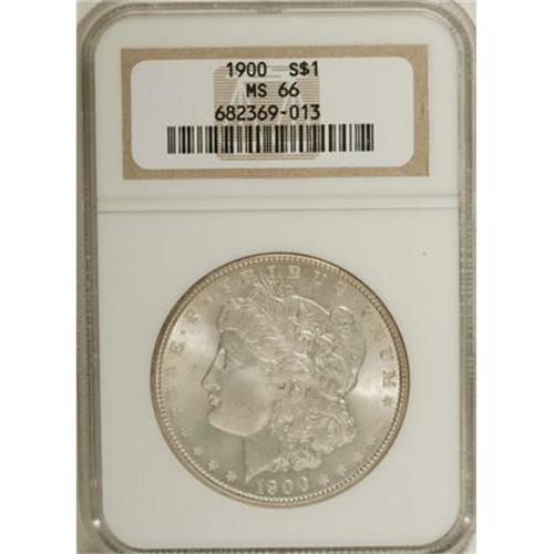 <B>1900 $1 MS66 NGC.</B></I> NGC Census: (431/27). PCGS Population (469/17). Mintage: 8,830,912. Numismedia Wsl. Price for NGC/PCGS coin in MS66: $525. (#7264)<BR><BR><b>Shipping:</b> Coins & Currency (<a target="_blank" href="http://www.heritageauctions.com/common/shipping.php">view shipping information</a>)