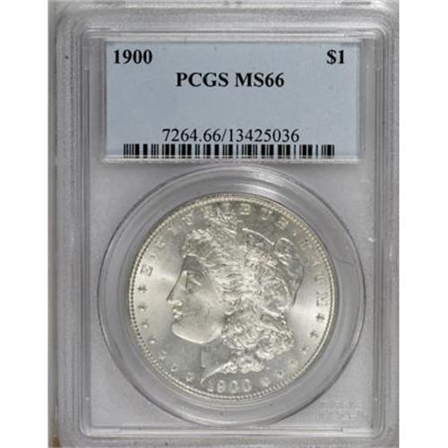 <B>1900 $1 MS66 PCGS.</B></I> PCGS Population (495/17). NGC Census: (447/28). Mintage: 8,830,912. Numismedia Wsl. Price for NGC/PCGS coin in MS66: $525. (#7264)<BR><BR><B>Coin Engraver:</B> George T. Morgan<BR><BR><b>Shipping:</b> Coins & Currency (<a target="_blank" href="http://www.heritageauctions.com/common/shipping.php">view shipping information</a>)