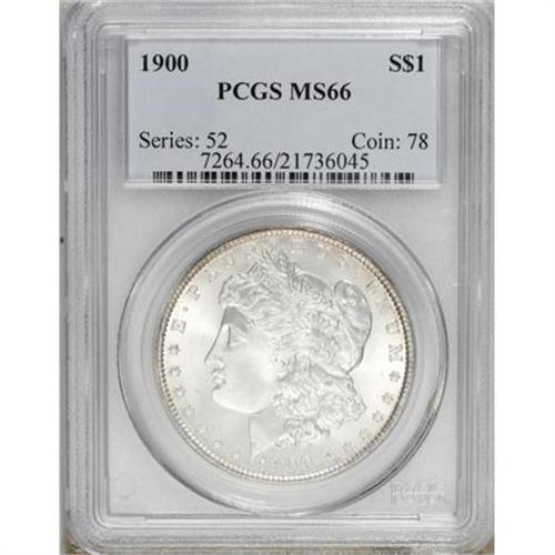 <B>1900 $1 MS66 PCGS.</B></I> PCGS Population (496/17). NGC Census: (446/29). Mintage: 8,830,912. Numismedia Wsl. Price for NGC/PCGS coin in MS66: $525. (#7264)<BR><BR><B>Coin Engraver:</B> George T. Morgan<BR><BR><b>Shipping:</b> Coins & Currency (<a target="_blank" href="http://www.heritageauctions.com/common/shipping.php">view shipping information</a>)