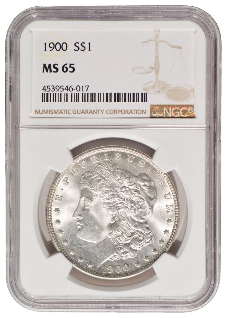 One 1900 $1 Morgan Silver Dollar Coin NGC MS65.