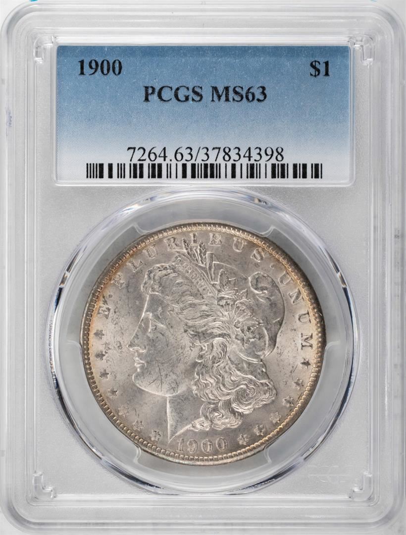 One 1900 $1 Morgan Silver Dollar Coin PCGS MS63 Amazing Toning. PCGS Graded.