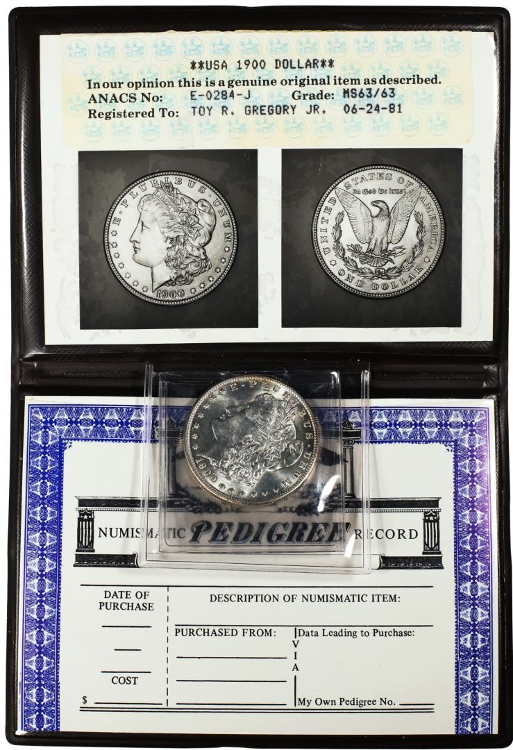 One 1900 $1 Morgan Silver Dollar Coin in ANACS MS63 in Folder. ANACS Certified.