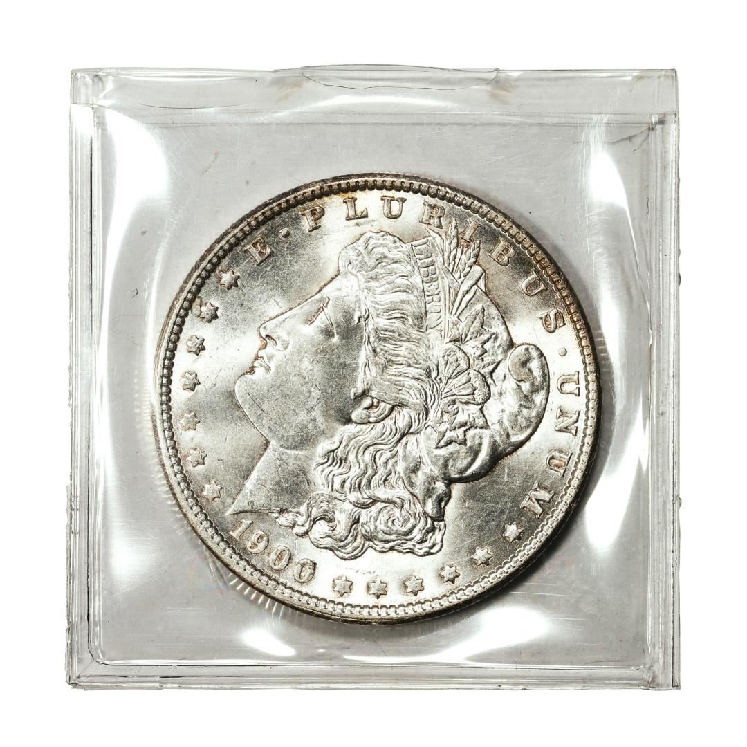 One 1900 $1 Morgan Silver Dollar Coin in ANACS MS63 in Folder. ANACS Certified.