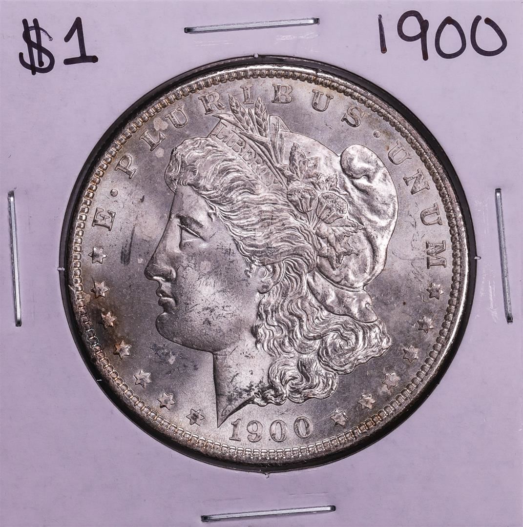 One 1900 $1 Morgan Silver Dollar Coin.