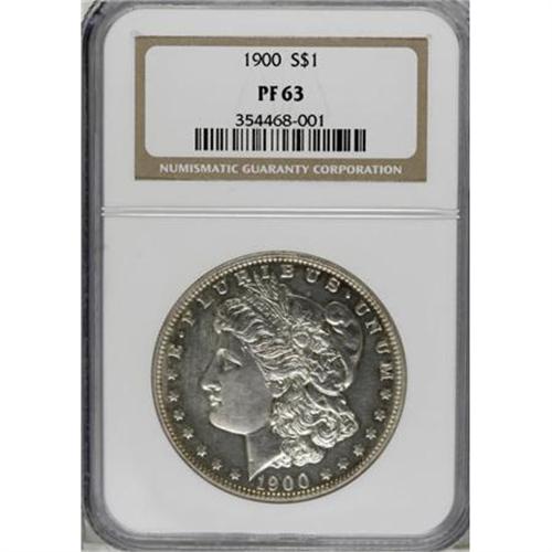 <B>1900 $1 PR63 NGC.</B></I> Whispers of gold-tan color adhere to bright proof surfaces that exhibit sharply struck design features. A nice Select specimen with just a few wispy handling marks.<BR><BR><B>Coin Engraver:</B> George T. Morgan<BR><BR><b>Shipping:</b> Coins & Currency (<a target="_blank" href="http://www.heritageauctions.com/common/shipping.php">view shipping information</a>)