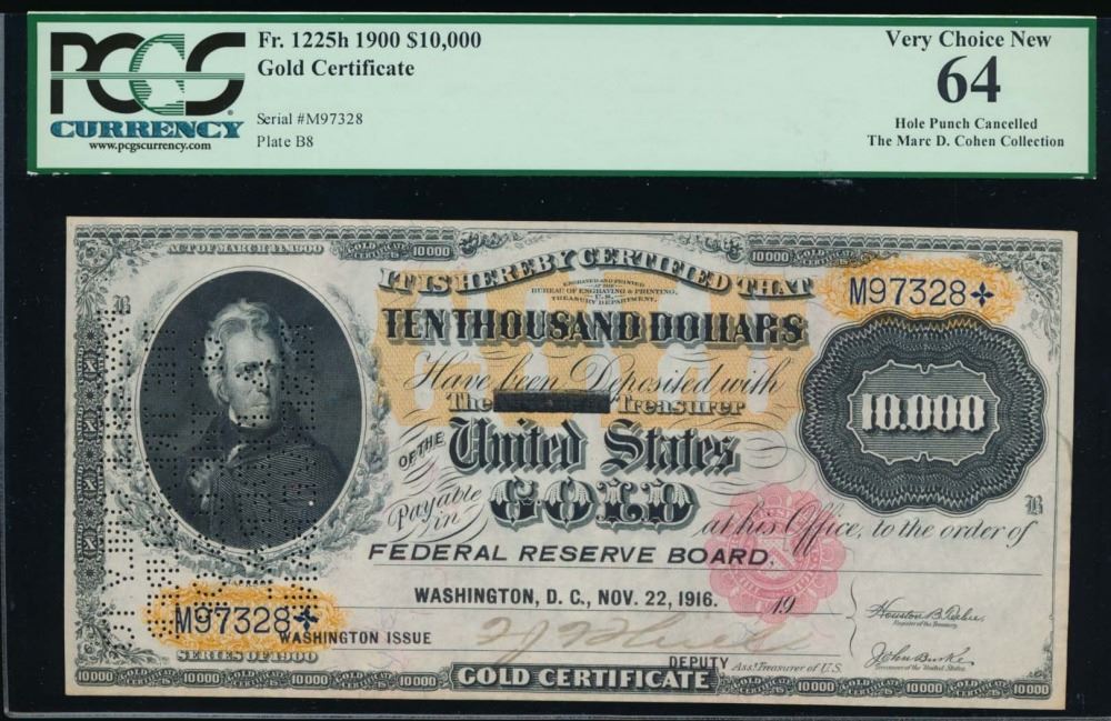 One 1900 $10,000 Gold Certificate PCGS 64.