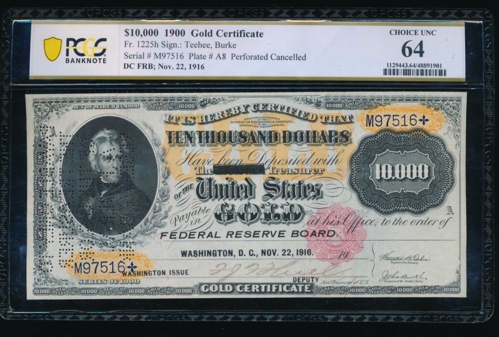 One 1900 $10,000 Gold Certificate PCGS 64.