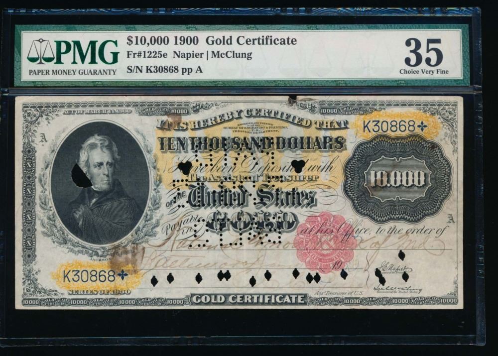 One 1900 $10,000 Gold Certificate PMG 35.