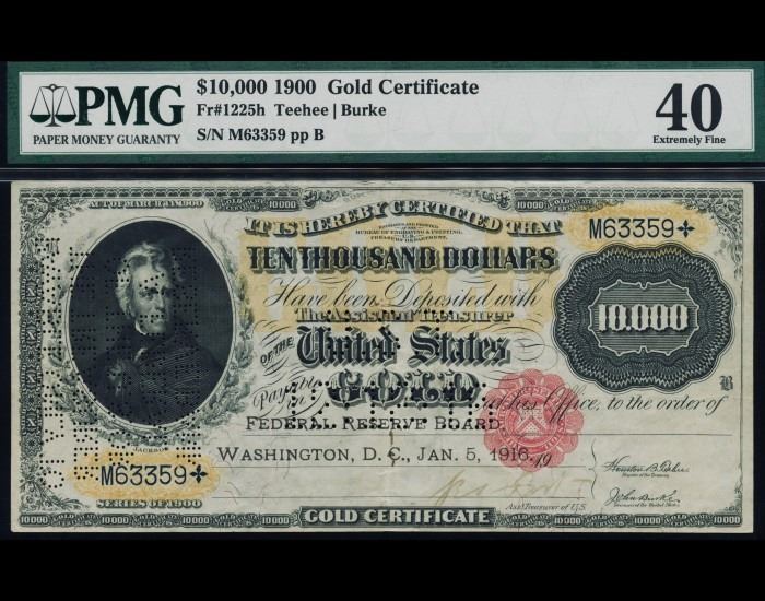 One 1900 $10,000 Gold Certificate PMG 40.