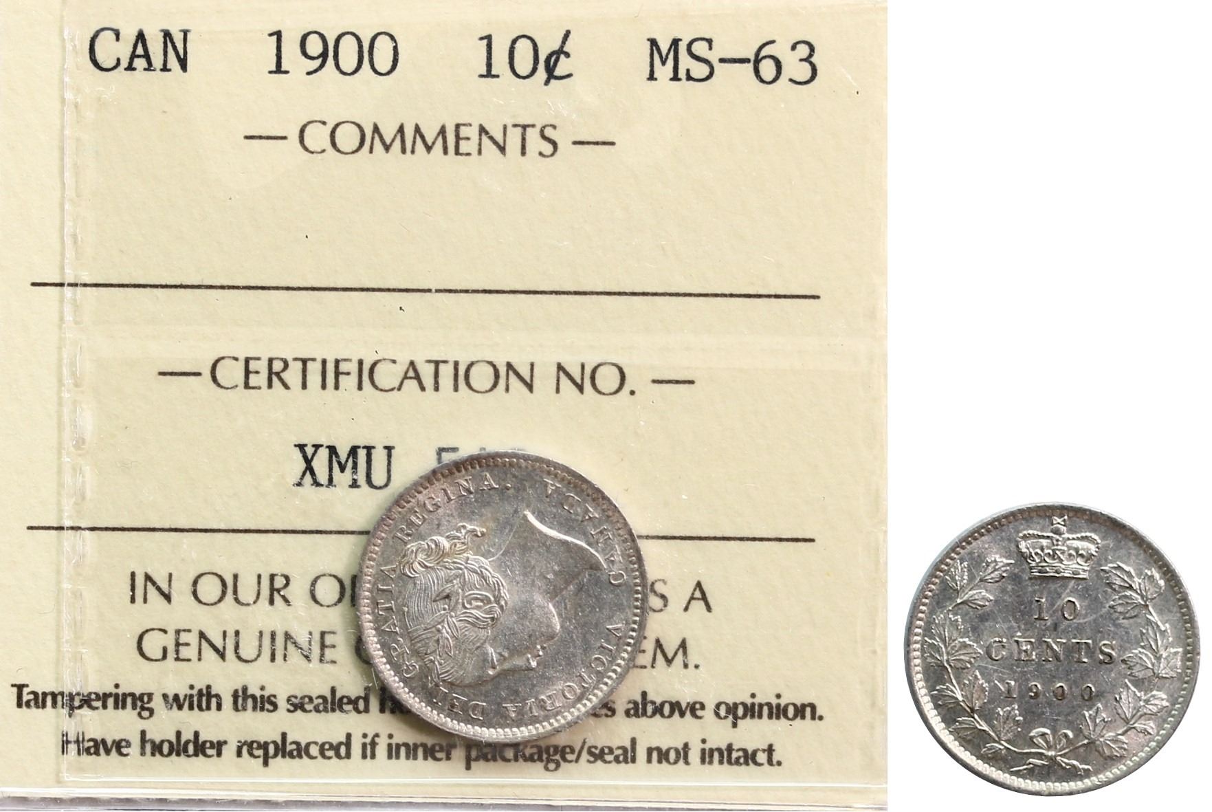 1900 10¢ ICCS Choice Mint State-63 Brilliant and lustrous.