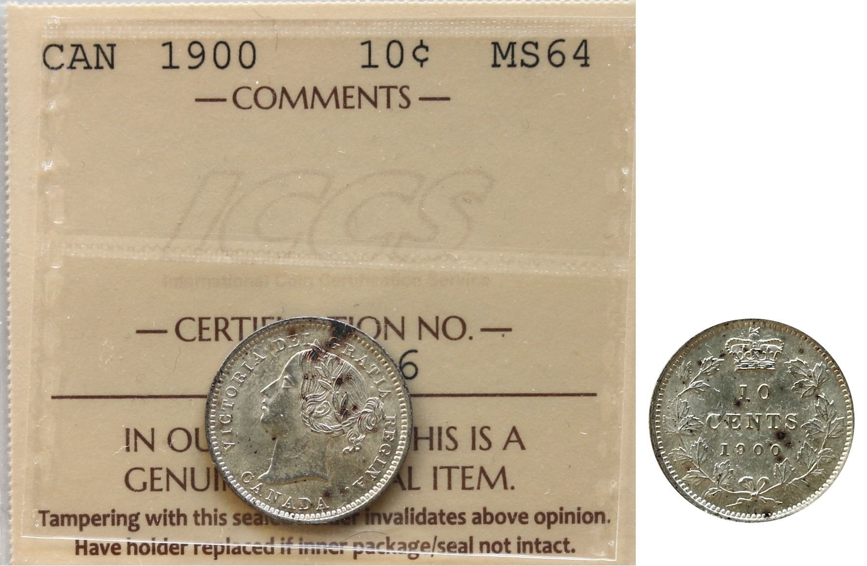 1900 10¢ ICCS Choice Mint State-64. A very nice and lustrous example.