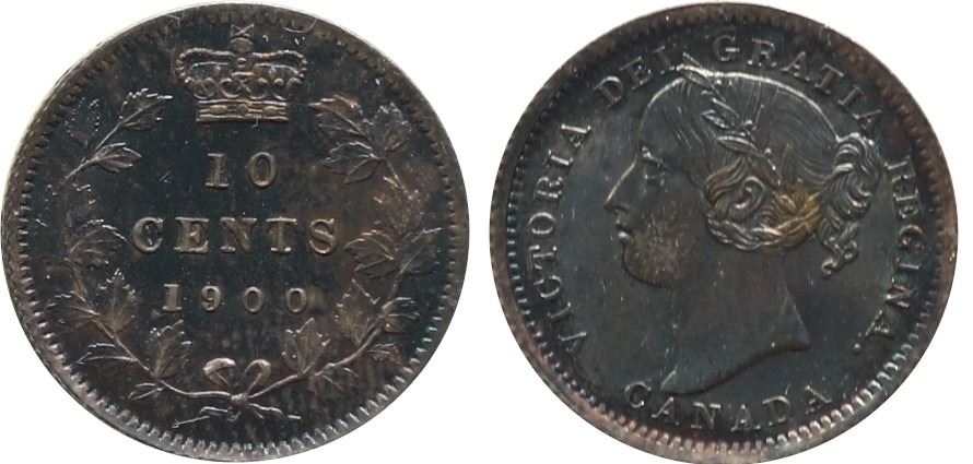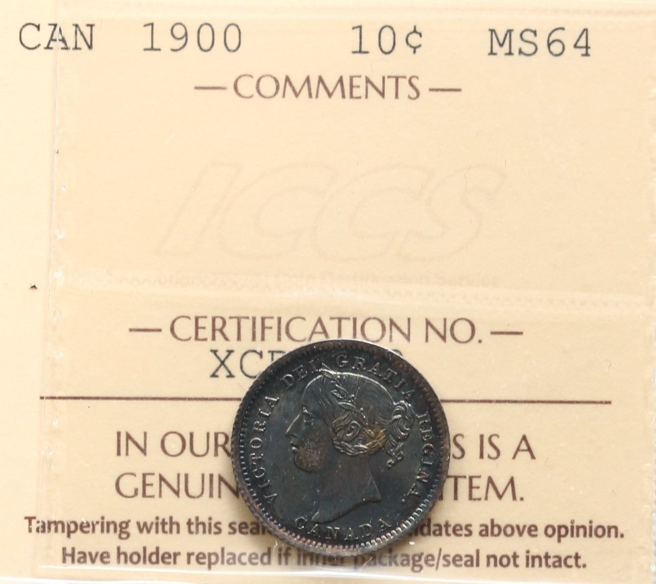 1900 10¢ ICCS Choice Mint State-64. Intense blue and green tones over full underlying lustre.